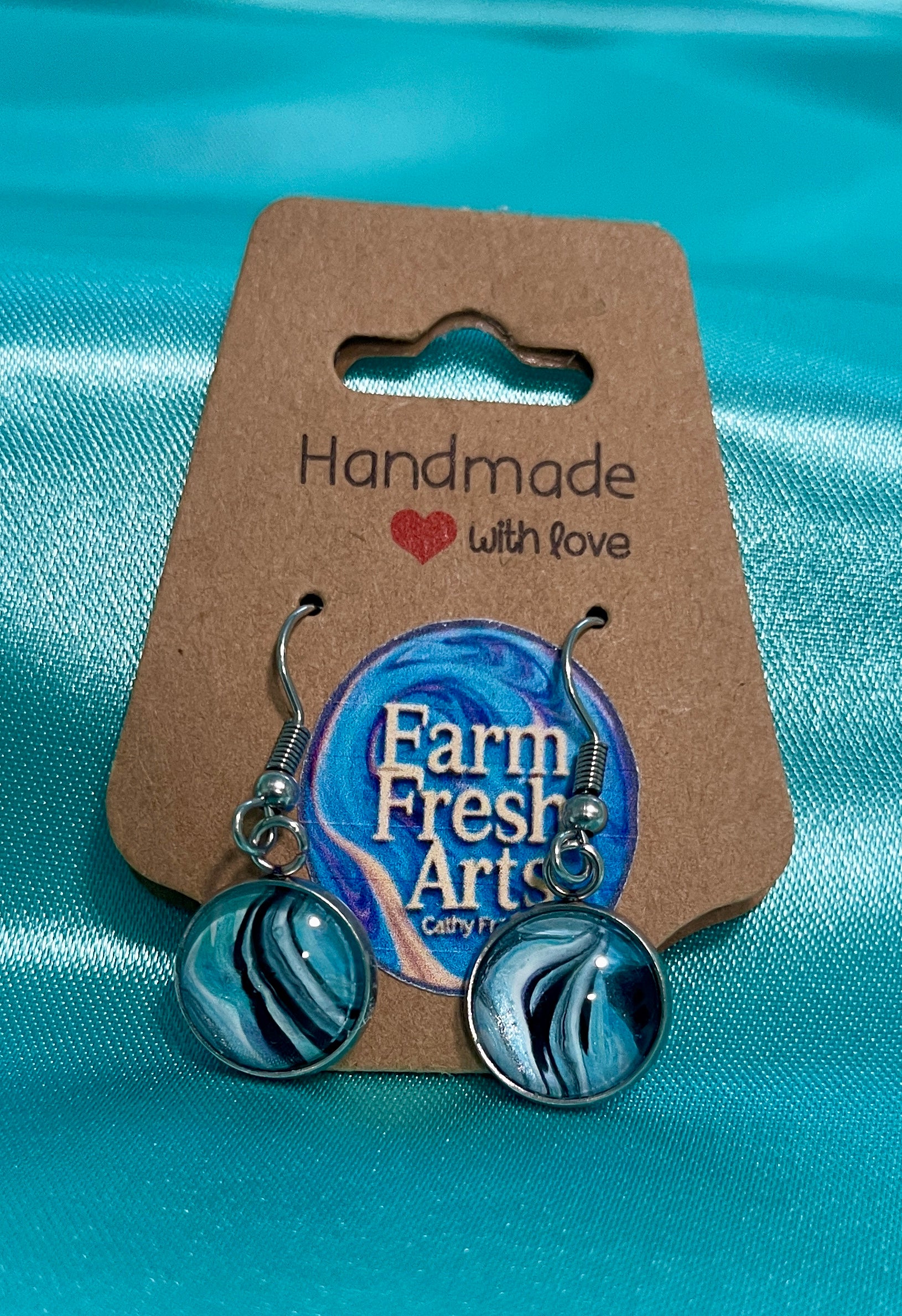 I made these with recycled paint from my paintings. Each earring is its own original piece of art. I try to get them as similar as possible, but each one has unique specialities that make it one of a kind.